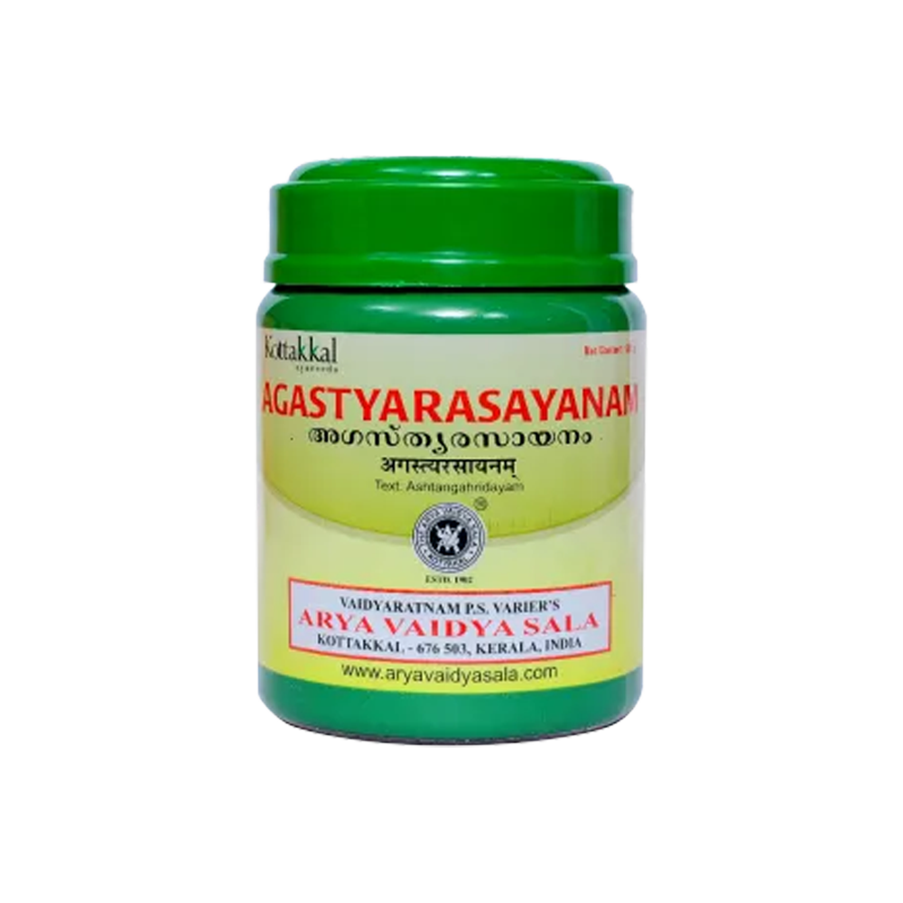 Agasthya Rasayanam: Classical rasayana (lehyam) used traditionally to restore vigor, support immunity and digestion. Contains herbs like Amla (for Chyavanaprasam), honey, ghee and other classical ingredients. Dose per label or physician.