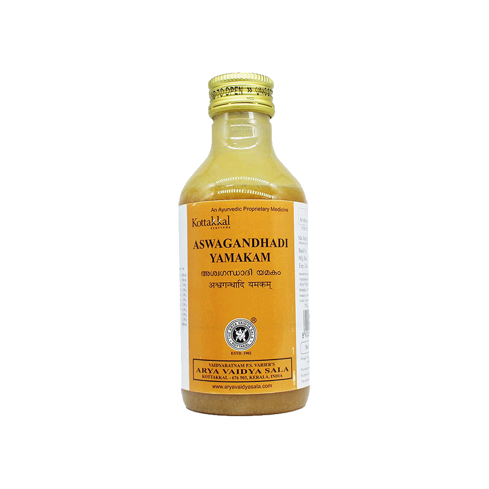 ASHWAGANDADI YAMAKAM 200ml: A classical Ayurvedic general formulation known for its healing and rejuvenating properties. Commonly used in traditional therapies to balance Vata and relieve muscle stiffness or pain. Apply warm or as directed by physician.