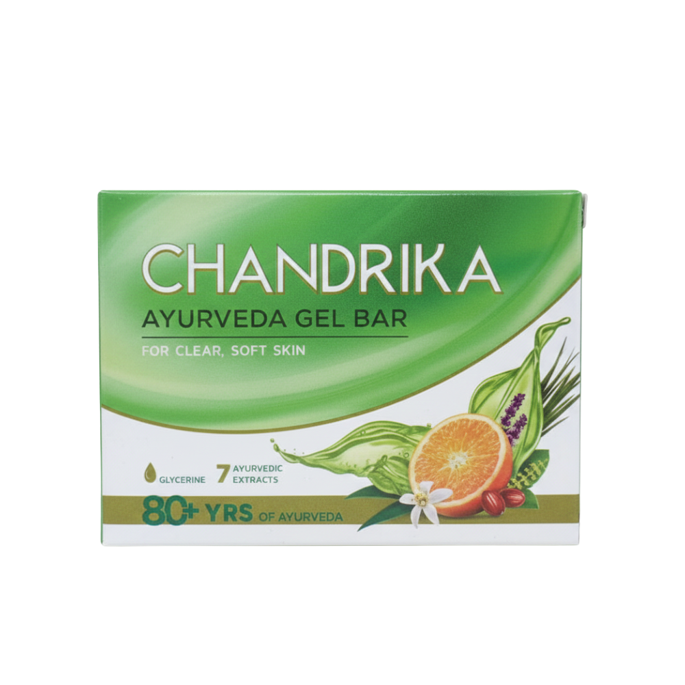 Chandrika Ayurveda Gel Bar is infused with glycerine and 7 powerful Ayurvedic extracts that deeply cleanse and keep the skin soft. Ideal for daily use, this gel-based formula nourishes, removes impurities, and promotes a naturally clear complexion. Suitable for all skin types.