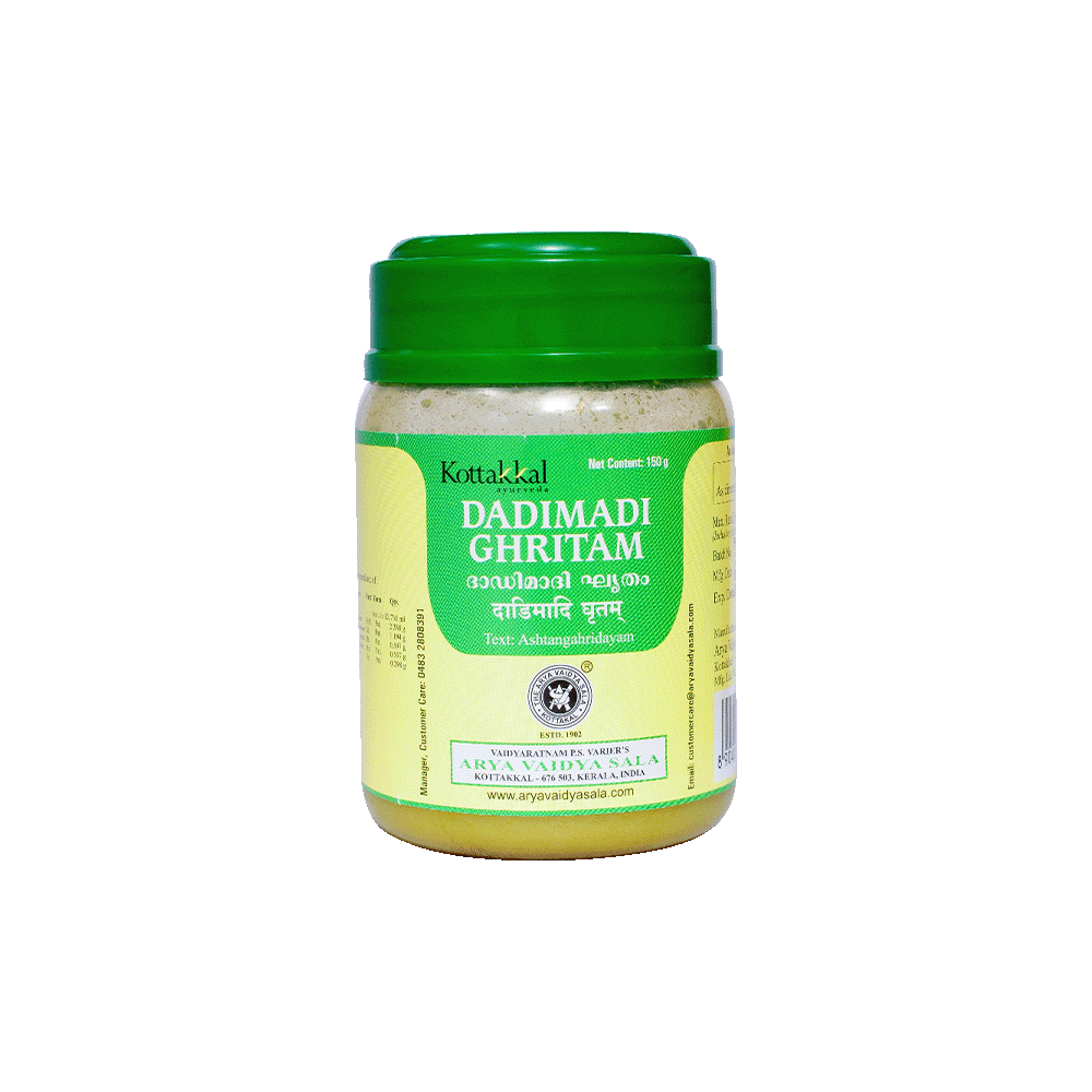 DADIMADI GRITAM: A classical Ayurvedic ghritham formulation known for supporting balance, rejuvenation, and traditional healing. Use as directed by an Ayurvedic physician.