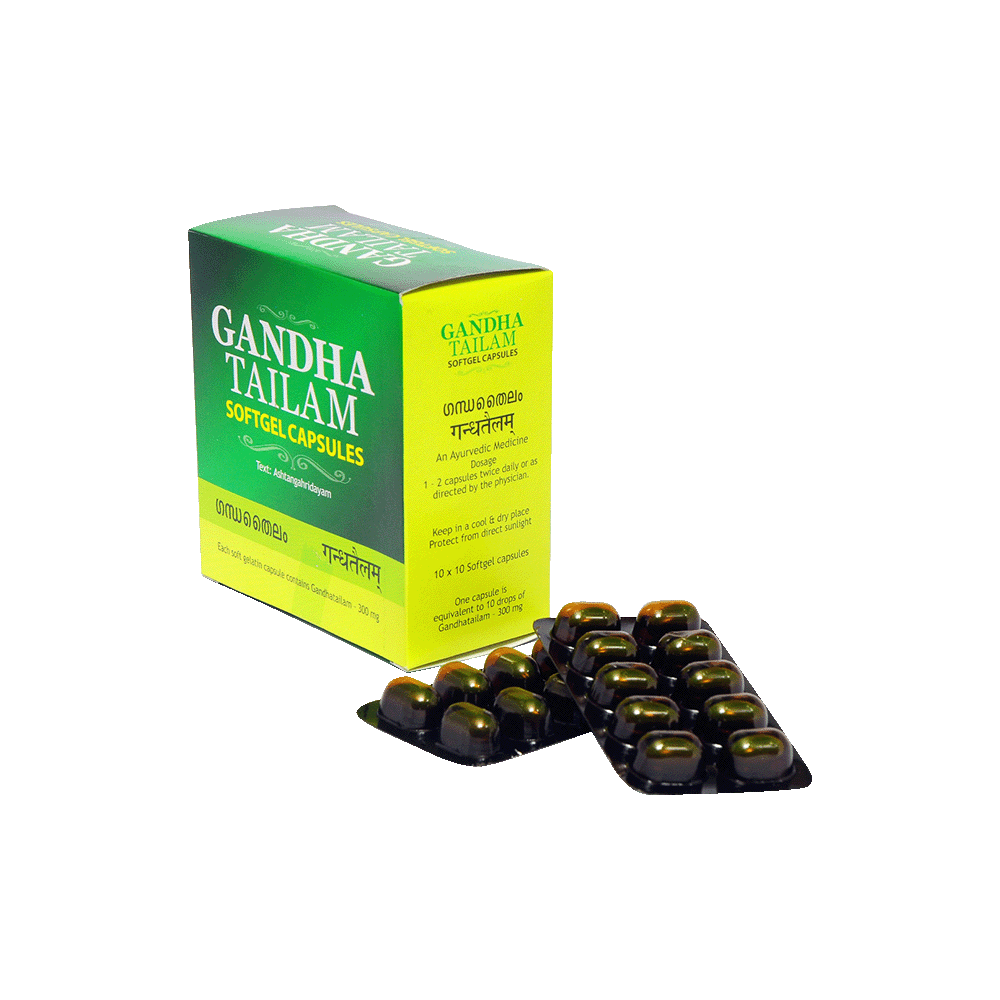 GANDHATAILAM CAP is an Ayurvedic formulation known for promoting general wellness.