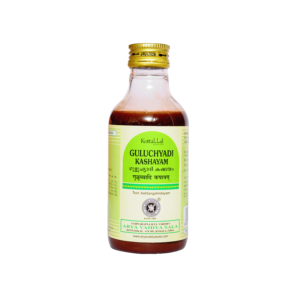 GULUCHYADI KS 200ml: A classical Ayurvedic Kashayam formulation known for supporting balance, rejuvenation, and traditional healing. Use as directed by an Ayurvedic physician.