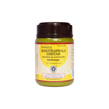 Indukantham Ghritham: A medicated ghee formulation prepared with classical herbs. Used as a rejuvenative, digestion aid, or for specific therapeutic indications depending on the formula. Typical dose small (1–3 g) or as advised by physician. Use under supervision if on lipid-lowering therapy.