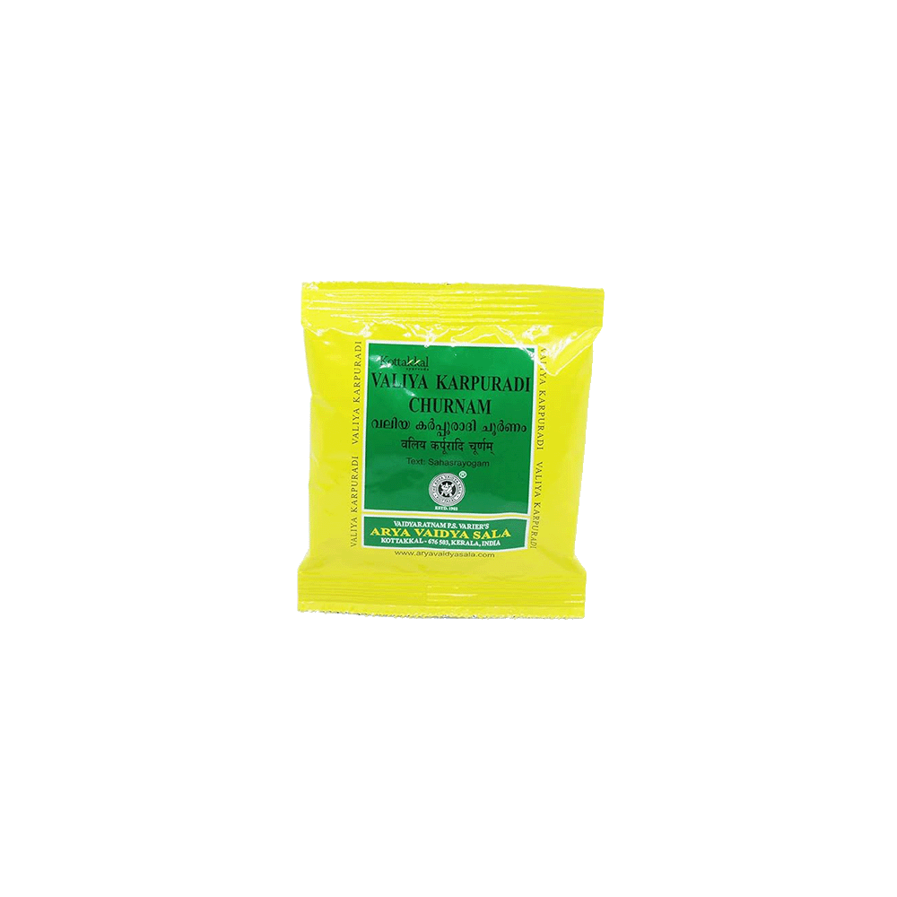 KARPURADI CHURNAM 10GM: A classical Ayurvedic churnam formulation known for supporting balance, rejuvenation, and traditional healing. Use as directed by an Ayurvedic physician.