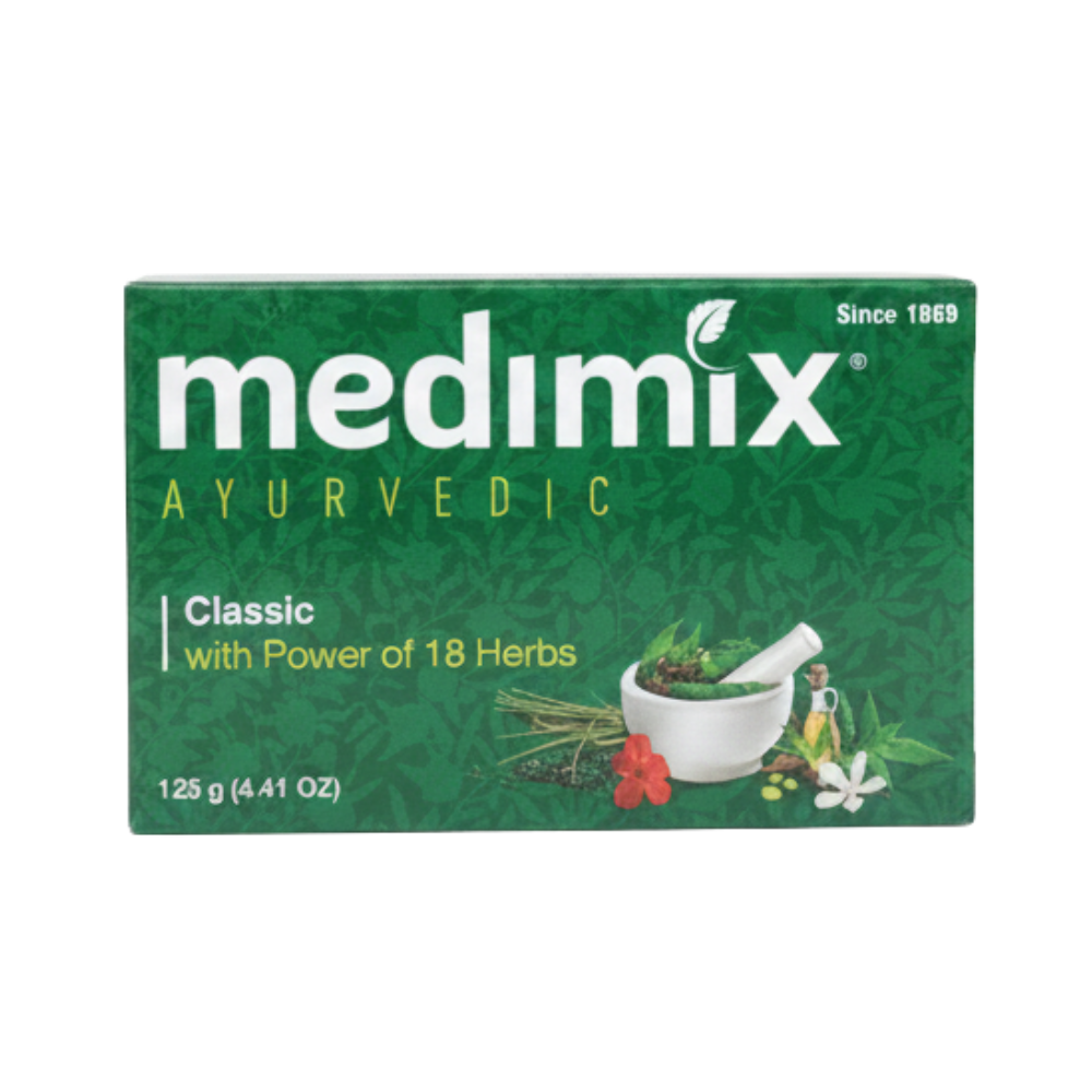 Medimix Classic Ayurvedic Soap is formulated with the power of 18 essential herbs to keep your skin clear, refreshed, and naturally protected. This traditional herbal blend helps maintain healthy skin, prevents dryness, and supports everyday cleansing. Ideal for all skin types and suitable for daily use.