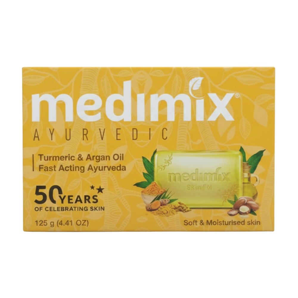 Medimix Turmeric & Argan Oil Soap blends Ayurvedic turmeric with nourishing argan oil to promote soft, moisturised, and healthy skin. Turmeric supports clear skin while argan oil provides deep hydration and glow. Suitable for everyday use and ideal for dry or sensitive skin.