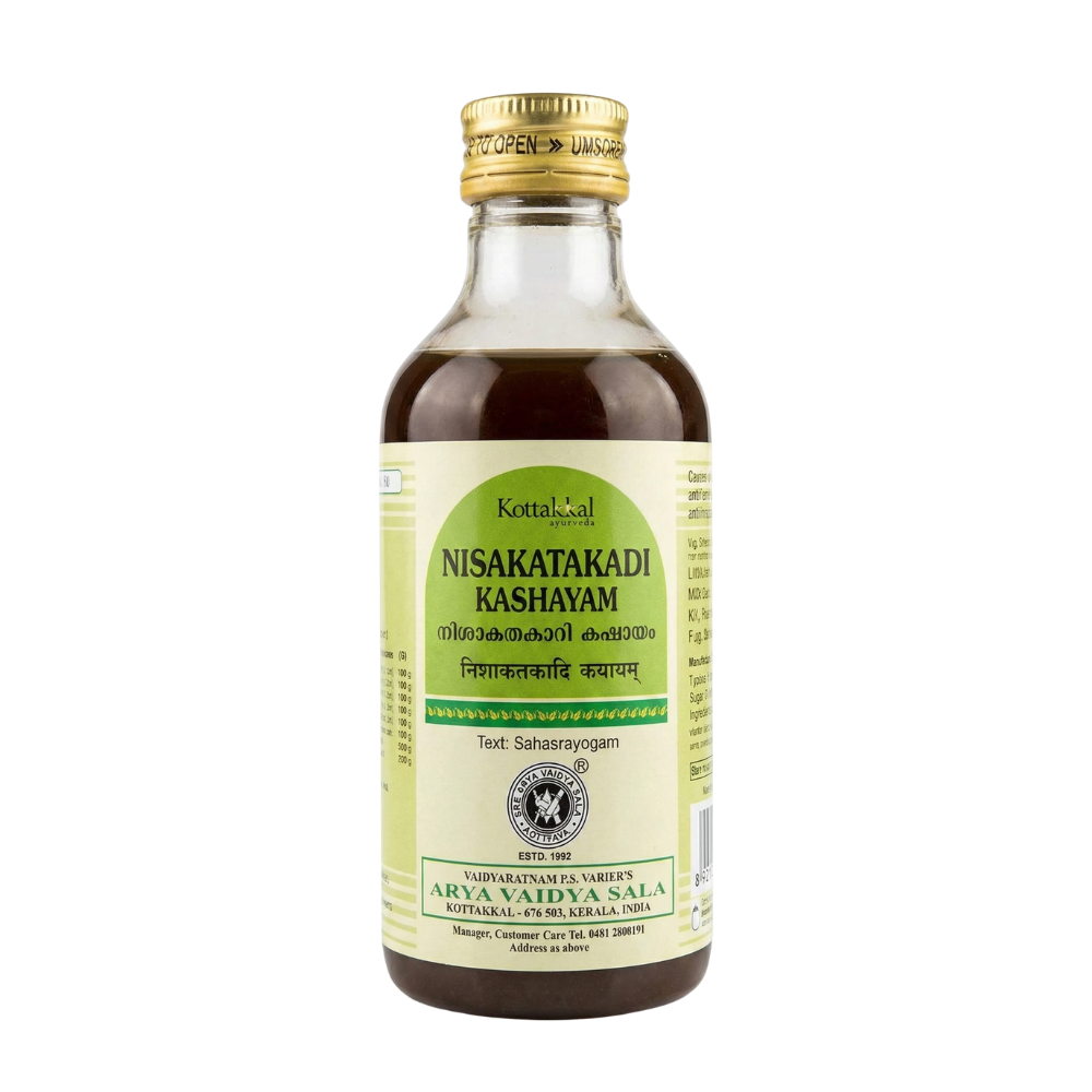 NISHKATHAKADI KS 200ml: A classical Ayurvedic Kashayam formulation known for supporting balance, rejuvenation, and traditional healing. Use as directed by an Ayurvedic physician.