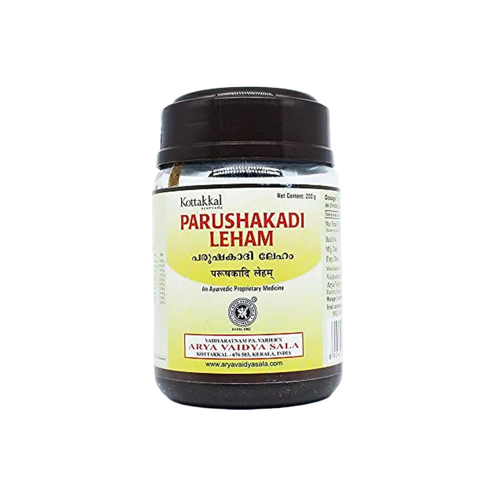 Parushakadi Lehyam: Classical rasayana (lehyam) used traditionally to restore vigor, support immunity and digestion. Contains herbs like Amla (for Chyavanaprasam), honey, ghee and other classical ingredients. Dose per label or physician.