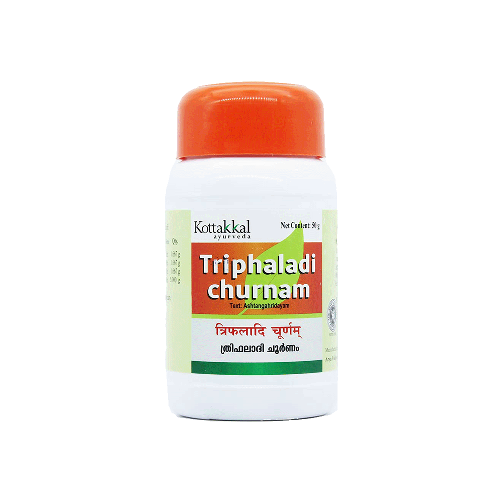 TRIPHALADI CHURNA 50GM: A classical Ayurvedic churnam formulation known for supporting balance, rejuvenation, and traditional healing. Use as directed by an Ayurvedic physician.