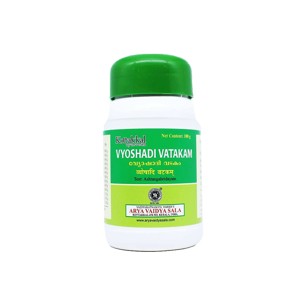 VYOSHADI VATAKAM: A classical Ayurvedic churnam formulation known for supporting balance, rejuvenation, and traditional healing. Use as directed by an Ayurvedic physician.